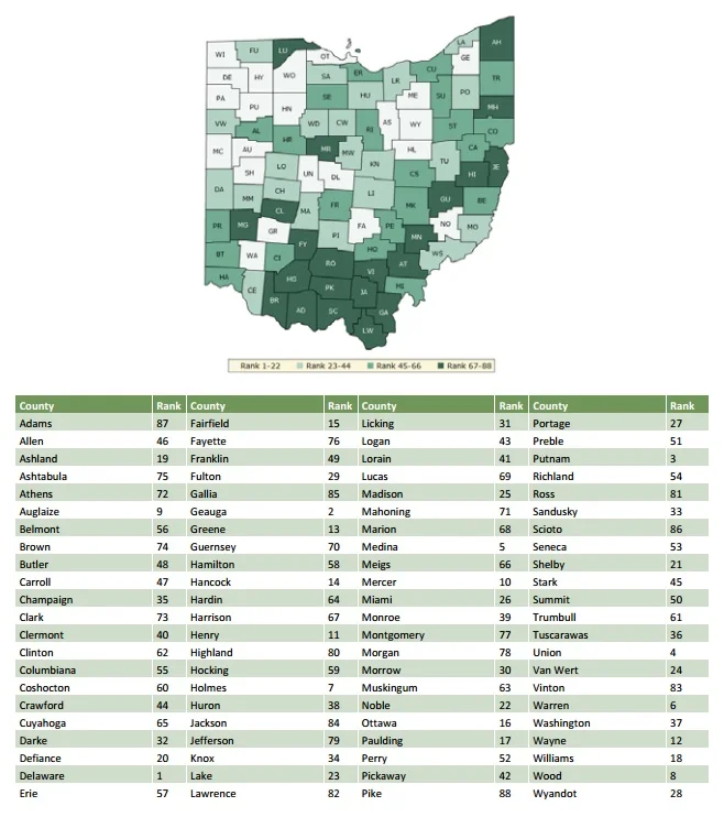 For a closer look at county-by-county health rankings in Ohio and elsewhere, visit the 2017 County Health Rankings study online.